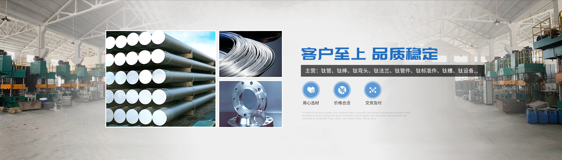 本公司的主營(yíng)產(chǎn)品鈦制品有,鈦管,鈦棒,鈦彎頭,鈦法蘭,鈦管件,鈦標(biāo)準(zhǔn)件,鈦槽,鈦設(shè)備,鈦沖壓彎頭等。所生產(chǎn)各種規(guī)格的鈦制品主要運(yùn)用于化工、電鍍、石油、電子、環(huán)保、海洋等領(lǐng)域"以質(zhì)量求生存,靠服務(wù)求發(fā)展“為宗旨,客戶的滿意是我們的追求,歡迎各界用戶來函來電,傳真,洽談貿(mào)易。